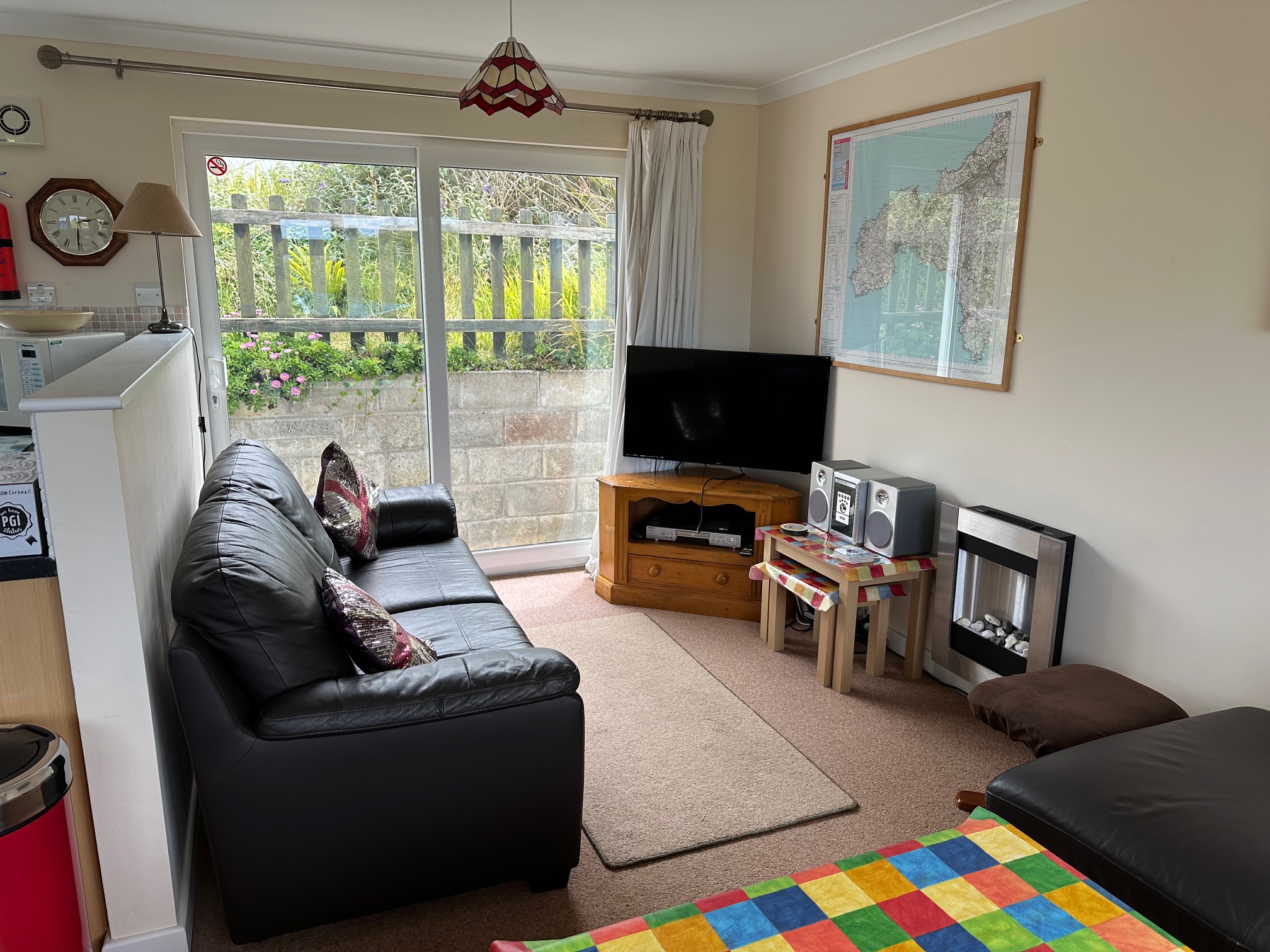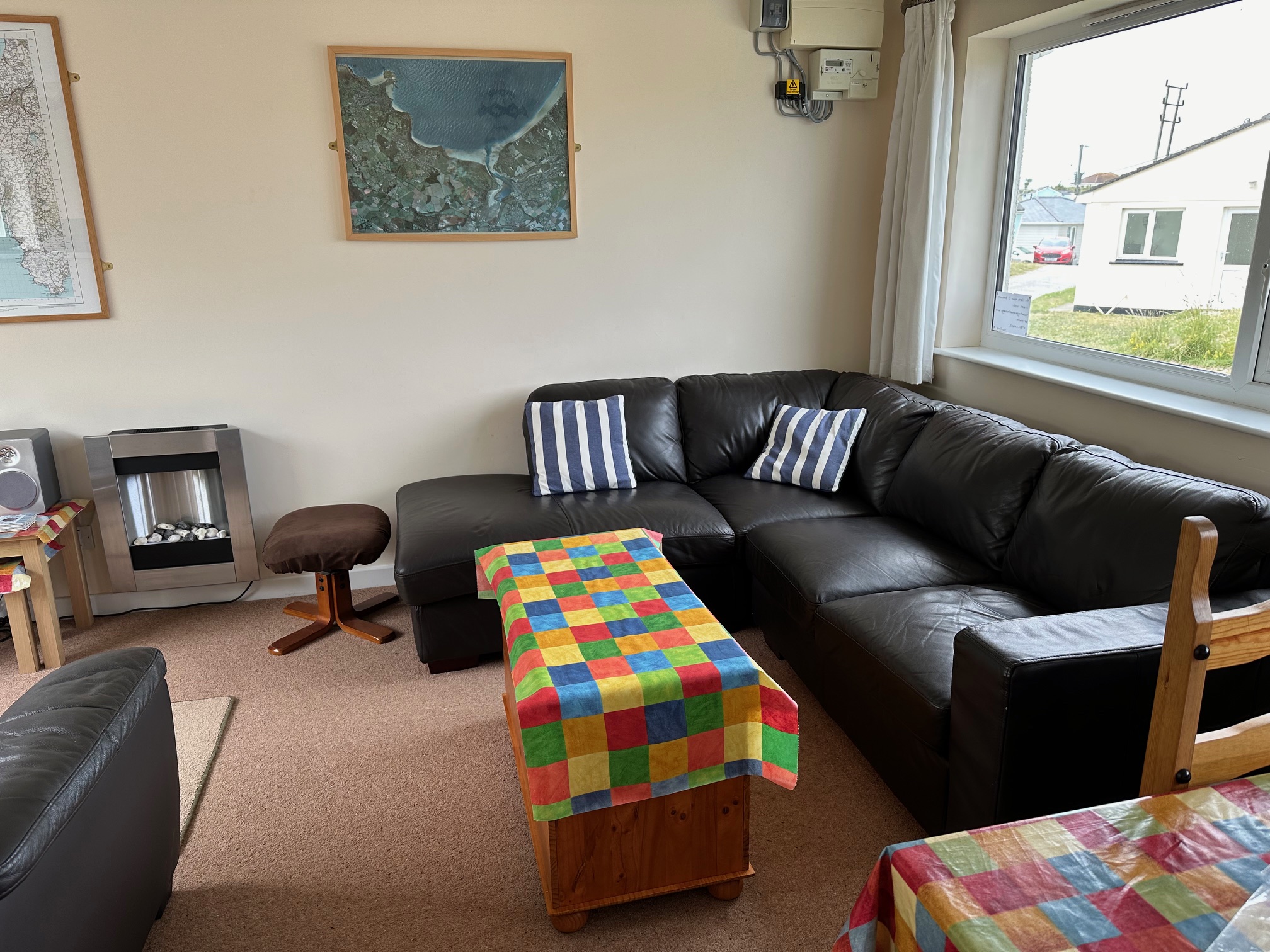 - Lounge - Corner sofa with seating for up to 5 people, 2 seater sofa, Colour TV with Freeview and DVD player, Radio/ CD player, Electric flame effect heater, nest of tables.