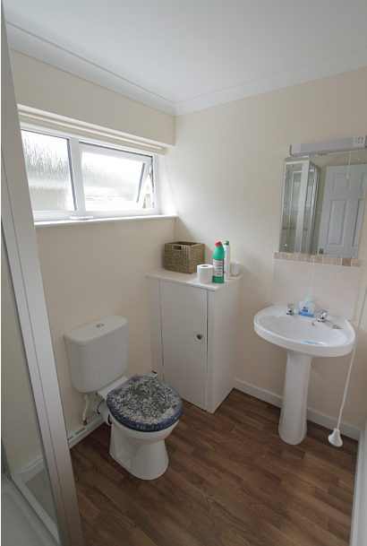 - Toilet / shower room - Tiled shower enclosure with electronic care grade temperature controlled shower, toilet, pedestal hand basin and electric wall heater.