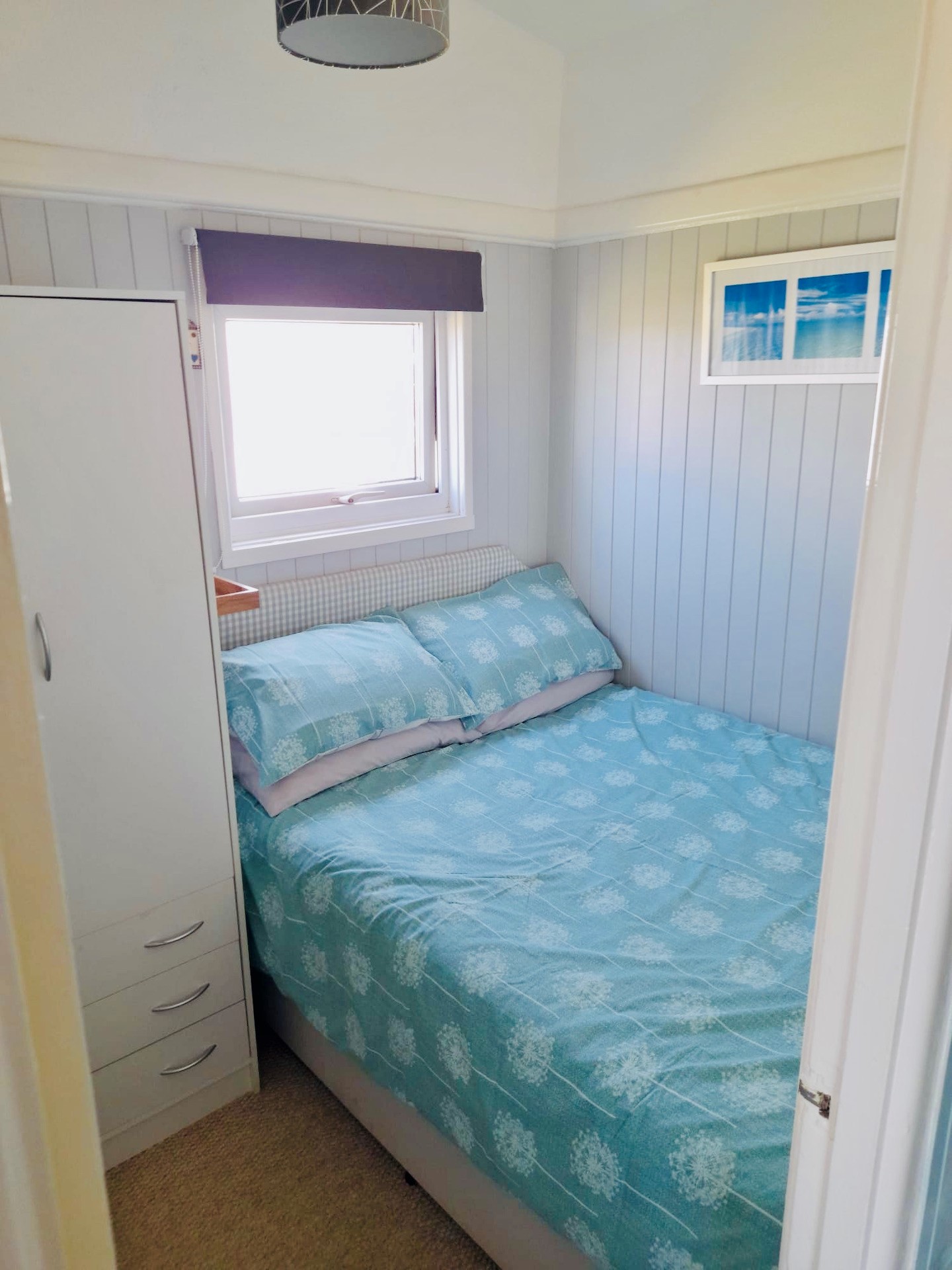 Bedroom 1 – Double bed with built in double wardrobe and drawers.